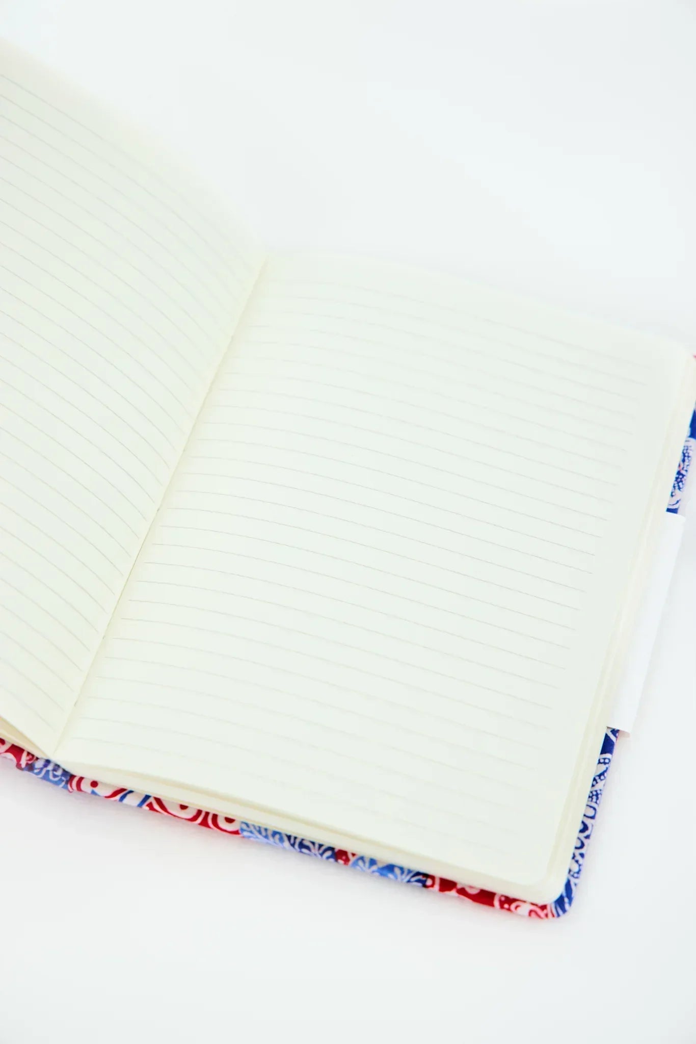 As these handbound journals are handmade using fabric offcuts, motif placement may vary from pictured, motif placements, and colours may differ slightly in each piece.