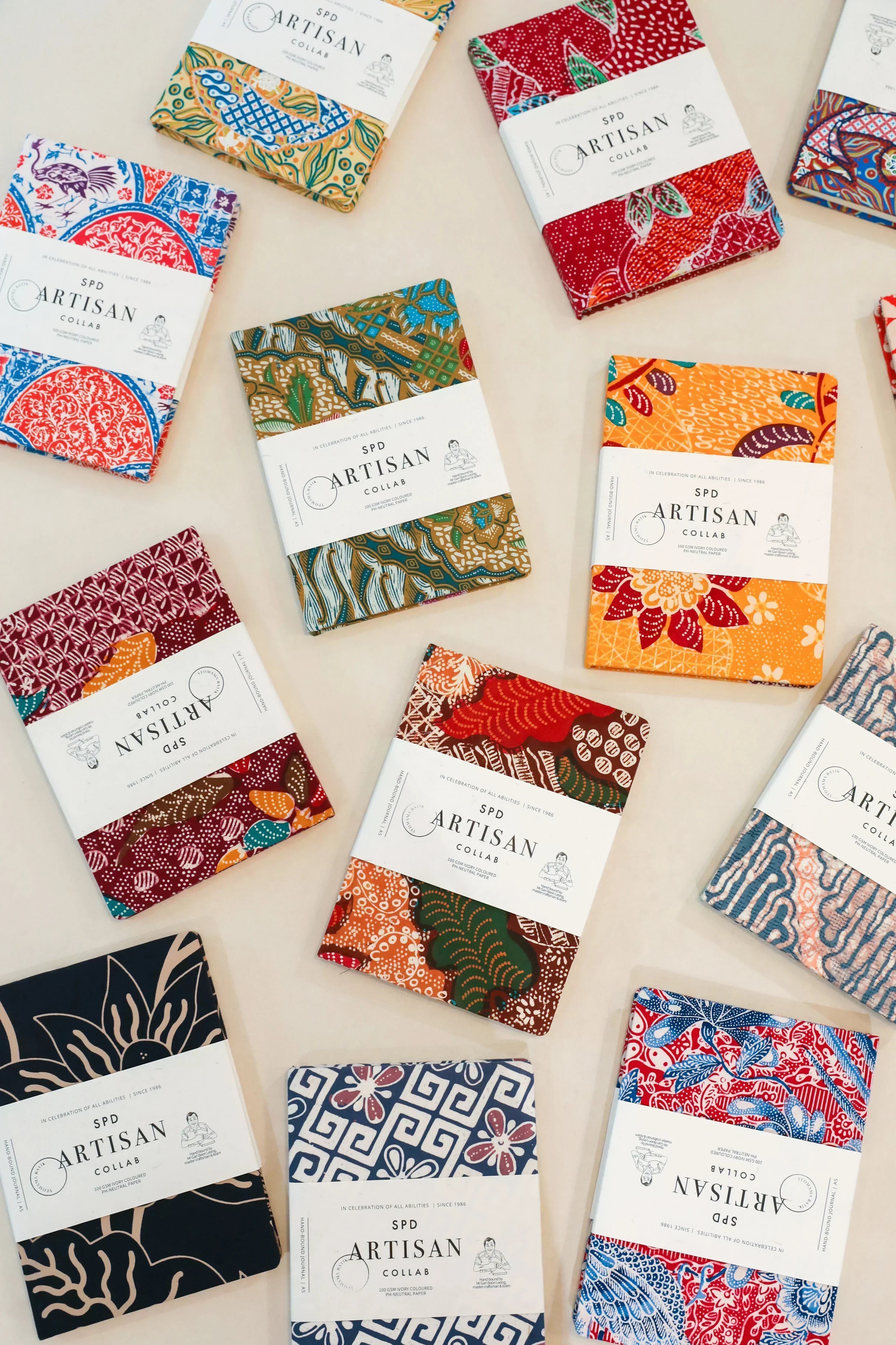 As these handbound journals are handmade using fabric offcuts, motif placement may vary from pictured, motif placements, and colours may differ slightly in each piece.