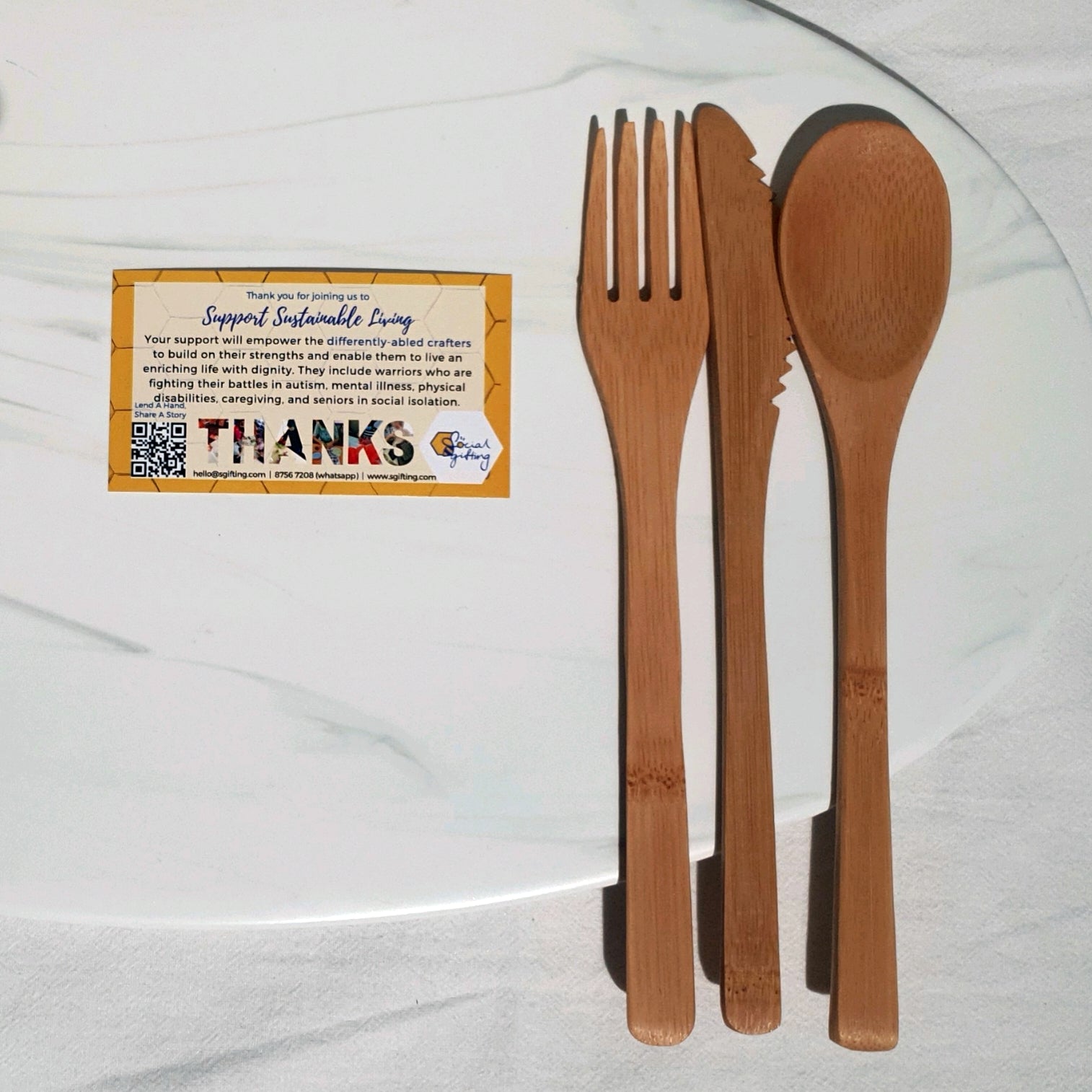 Our Bamboo Cutlery Set offers an eco-friendly alternative to plastic cutlery. This set is durable, reusable and 100% biodegradable making it perfect for picnics, barbeques, camping and home use. The unique design of bamboo makes it strong and lightweight, and the smooth finish is comfortable to hold. Enjoy your meals with this sustainable utensil set.