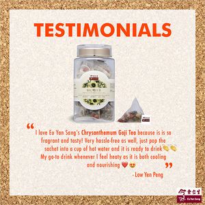 Experience the soothing taste and numerous health benefits of Eu Yan Sang Chrysanthemum Goji Tea. Order now to embrace a healthier lifestyle!