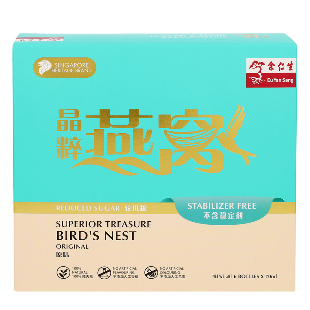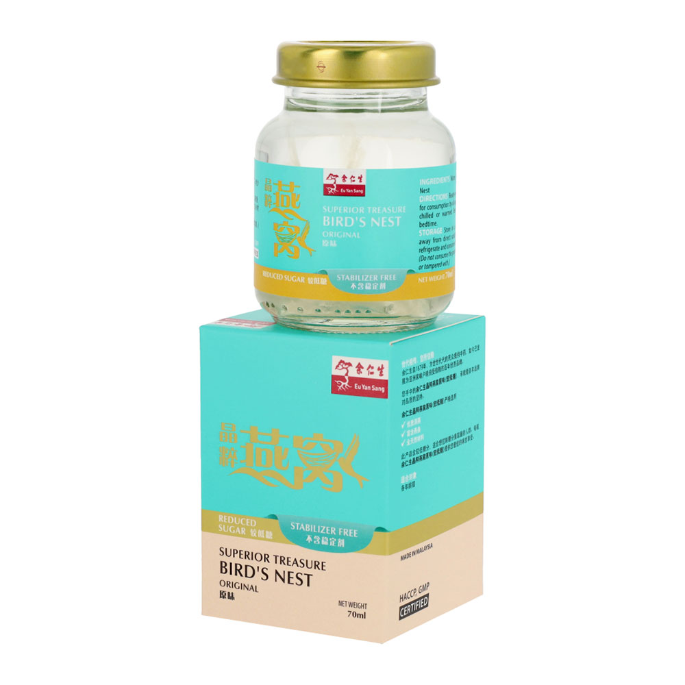 Eu Yan Sang Superior Treasure Bird's Nest Original (Reduced Sugar) uses genuine superior cave bird's nest with rich strands and all-natural ingredients. With less sugar, it’s ideal for those conscious of sugar intake, delivering a perfect gastronomical delight.