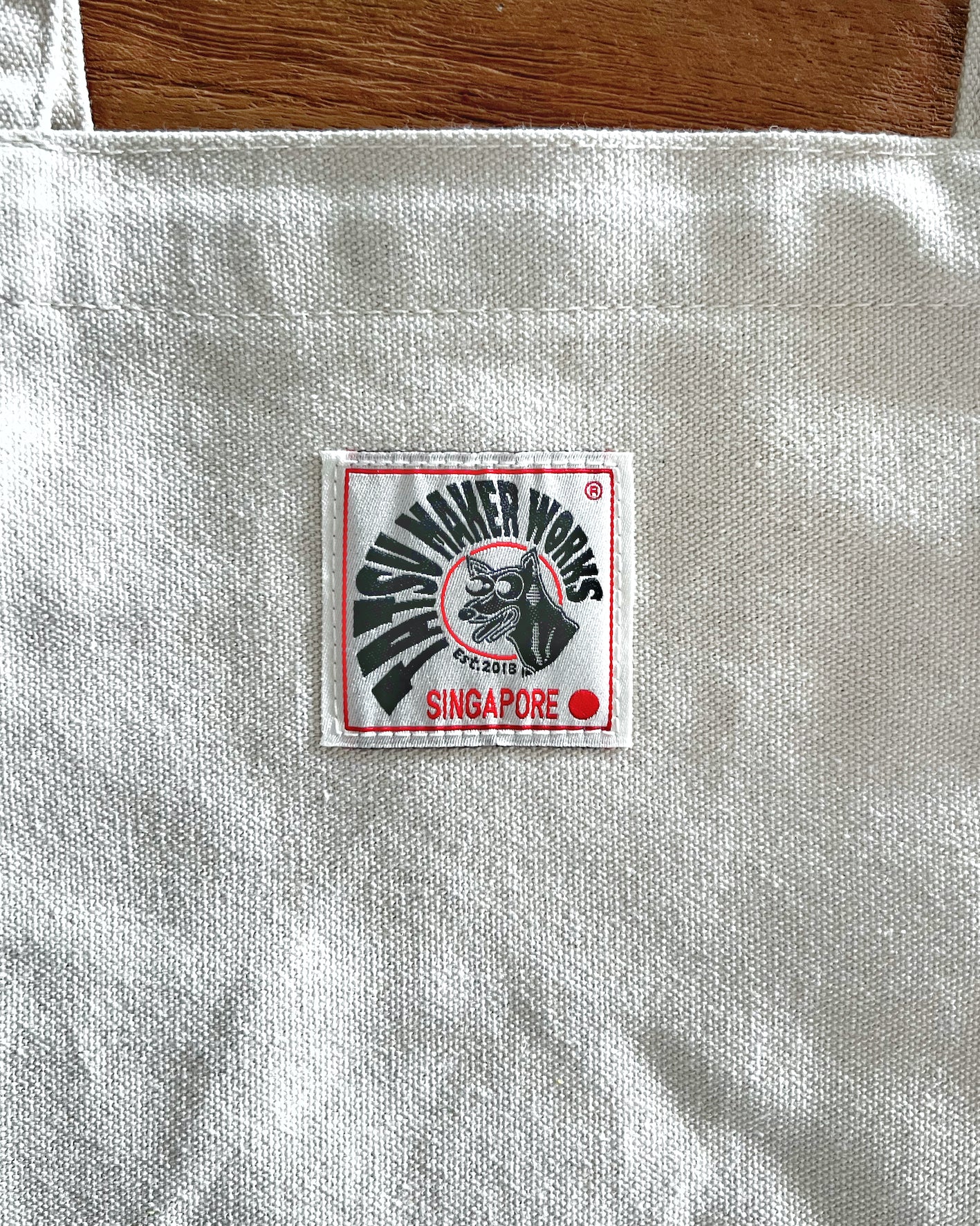 Super functional with a 20×21cm enclosed zip pocket. Heavy canvas with an overall size 48×37cm. The image rides high on the bag so it doesn’t roll under when it’s carrying a load. Comfortable 10”/25cm strap hang.