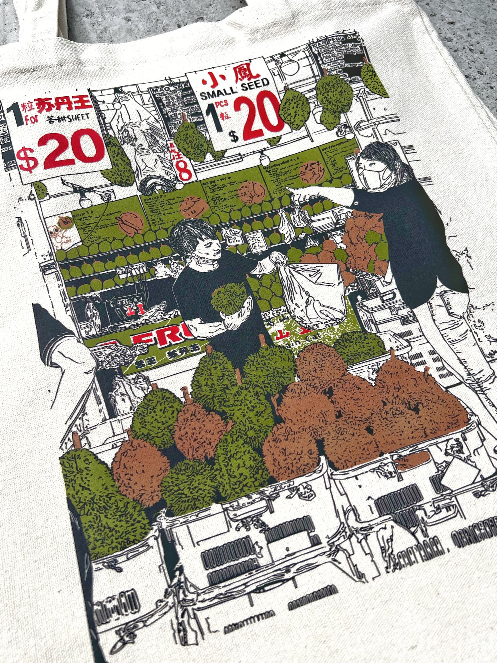 King Fruits Durian fills all your durian needs, except for this tote bag (and our t-shirt). That’s where we come in.